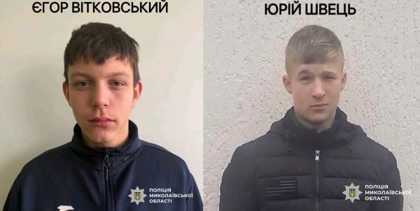 Відділенням поліції № 3 Первомайського райвідділу розшукуються 16-річний Єгор Вітковський та 15-річний Юрій Швець, які в ніч з 12 на 13 березня пішли у невідомому напрямку з території навчального закладу в с. Берізки Кривоозерської громади та досі не повернулись. Наразі зв’язок із ними відсутній та місце їхнього знаходження невідоме.